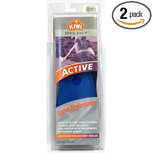 Product Description : : Kiwi Select Sport Performance Contoured Replacement Insoles. Excellent Shock Absorption: Ball and heel strike gel inserts give superior shock absorption and impact resistance for the athlete involved in high impact activities. Superior Cushioning And Durability: High quality foam based reduces compression fatigue. Contoured Areas: Heel cup through arch area improves foot stabilization and comfort. Fabric Top Layer: Nylon material reduces friction from foot movement thus reducing heat.